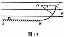 22.(16分)如图13所示,水平绝缘光滑轨道AB的B端与处于竖直平面内的四分之一圆弧形粗糙绝缘轨道BC平滑连接,圆弧的半径R = 0.40m。在轨道所在空间存在水平向右的匀强电场,电场强度E =1.0×104N/C。现有一质量m = 0.10kg的带电体(可视为质点)放在水平轨道上与B端距离s = 1.0m的位置,由于受到电场力的作用带电体由静止开始运动,当运动到圆弧形轨道的C端时,速度恰好为零。已知带电体所带电荷q = 8.0×