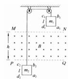 边平行,两边界间的距离为h=78.40 cm。磁场方向垂直线框平面向里。已知两线框的边长均为l=40.00 cm,线框
