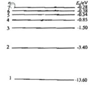 用大量具有一定能量的电子轰击大量处于基态的氢原子,观测到了一定数目的光谱线。调高电子的能量再次进行规测,发现光谱线的数目比原来增加了5条。用△n表示两次观测中最高激发态的量子数n之差,E表示调高后电子的能量。根据氢原子的能级图可以判断,△n和E的可能值为