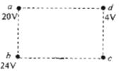 20.a、b、c、d是匀强电场中的四个点,它们正好是一个矩形的四个顶点.电场线与矩形所在平面平行。已知a点的电势为20V,b点的电势为24V,d点的电势为4V,如图,由此可知c点的电势为
