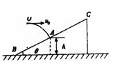 的斜面上的A点。如果A点距斜面底边(即水平地面)的高度为h,小球到达A点时的速度方向恰好与斜面方向垂直,如右图,则可以确一小球 ( )