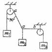 (4)如图所示,三根轻绳一端分别系住质量为m1,m2,m3的物体,它们的另一端分别通过光滑定滑轮系于O点,整个装置处于平衡状态时,oa与竖直方向成30°角,ob处于水平状态。则可知m1 : m2 : m3=