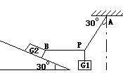 18.所受重力G1=10牛的砝码悬挂在绳PA和PB的结点上.PA偏离竖直方向30°角,PB在水平方向,且连在所受重力为G2=20牛的木块上,木块静止于倾角为30°的斜面上,如图,试求: