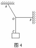 7.三段不可伸长的细绳OA、OB、OC能承受的最大拉力相同,它们共同悬挂一重物,如图4所示,其中OB是水平的,A端、B端固定.若逐渐增加C端所挂物体的质量,则