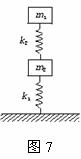 10.如图7所示,两木块的质量分别为m1和m2,两轻质弹簧的劲度系数分别为k1和k2,上面木块压在上面的弹簧上(但不拴接),整个系统处于平衡状态.现缓慢向上提上面的木块,直到它刚离开上面弹簧.在这过程中下面木块移动的距离为C