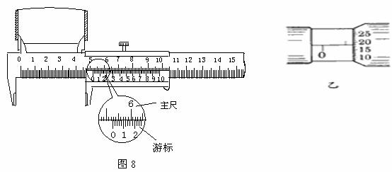 11.用游标卡尺(测量值可准确到0.02 mm)测定某圆筒的内径时,卡尺上的示数如图8所示.可读出圆筒的内径为____mm,螺旋测微器读数如图乙所示,则电阻丝的直径d= mm.