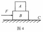8.如图4所示,C是水平地面,A、B是两上长方形的物场,F,是作用在物块B上沿水平方向的力,物体A和B以相同的速度作匀速直线运动,由此可知,A、B间的动摩擦因数μ1,B、C间的动摩擦因数μ2有可能是 ( )