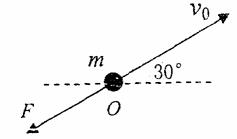 17.(18分)质量为m、带电量为+q的小物体在O点以初速度v0沿与水平方向成30°角方向射出,如图所示。物体在运动过程中,除重力外,还受到方向始终与初速度v0方向相反的力F的作用。