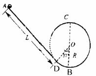17.“翻滚过山车”的物理原理可以用如图所示装置演示。光滑斜槽轨道AD与半径为R=0.1m的竖直圆轨道(圆心为O)相连,AD与圆O相切于D点,B为轨道的最低点,∠DOB=37°。质量为m=0.1kg的小球从距D点L=1.3m处静止开始下滑,然后冲上光滑的圆形轨道(g取10m/s2,sin37°=0.6,cos37°=0.8)。求: