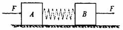1.木块A、B分别重50N和60N,它们与水平地面之间的动摩擦因数均为0.25;夹在A、B之间的轻弹簧被压缩了2cm,弹簧的劲度系数为400N/m,系统置于水面上静止不动. 现用F=1N的水平向右的拉力作用在木块B上和F=1N的水平向右的推力作用在A上,作用后它们仍静止不动. 则作用后 ( )