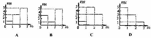 5.质量为m=1kg的物体静止在水平面上,物体与水平面之间的动摩擦因数为μ=0.2. 现对物体施加一个大小变化、方向不变的水平力F,为使物体在3s时间内发生的位移最大,力F的大小应如下面的哪一幅图所示 ( )