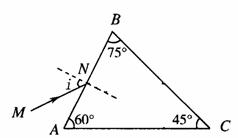 16.(8分)[物理3-4]如图所示,是一种折射率n=1.5的棱镜,用于某种光学仪器中,现有一束光线沿MN方向射到棱镜的AB面上,入射角的大小i=arcsin0.75,求: