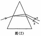 3.一束光,经三棱镜折合后分成a、b两束,如图(2)所示,对a、b两束光,下列说法正确的是( )