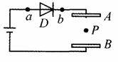 ,平行板电容器AB内部原有电荷P处于静止状态,当两极板A和B的间距稍增大一些的瞬间(两极板仍平行),P的运动情况将是 ( )
