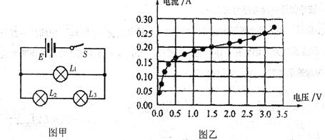 4.在如图甲所示的电路中,电源电动势为3.0V,内阻不计,L1、L2、L3为3个相同规格的小灯泡,这种小灯泡的伏安特性曲线如图所示.当开关闭合后: ( )