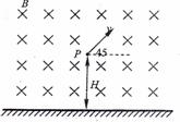 (2)若某时刻微粒运动到场中距地面高度为H的P点,速度与水平向方成45°,如图所示。则该微粒至少须经过多长时间运动到距地面最高点?最高点距地面多高?