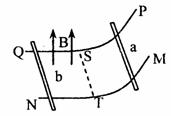 16.(12分)如图所示,平行导轨MN和PQ相距0.5m,电阻可忽略,摩擦不计,其水平部分QSTN置于磁感应强度大小为0.60T、方向竖直向上的匀强磁场中,倾斜部分PSTM处没有磁场,两部分平滑对接,其上搁有两根导体棒a、b,b垂直于水平导轨放置,a垂直于倾斜导轨放置,已知细导体棒a和b质量均为0.20kg,在导轨间部分的电阻均为0.15