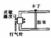 6.如图所示,一绝热的内壁光滑的厚壁容器装有一个大气压的空气,它的一端通过胶塞插进一支灵敏温度计和一根气针;另一端有一可移动的胶塞(用卡子卡住).用打气筒慢慢向容器内打气,当容器内空气的压强增大到一定程度时停止打气,读出灵敏温度计的示数,则下列说法中可能正确的是 ( )
