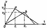 17.如图,质量相等的a、b两物体,从斜面上的同一位置A由静止下滑,经B点的水平面上滑行一段距离后停下。不计经过B点时的能量损失,用传感器采集到它们的速度--时间图象,下列说法正确的是 ( )