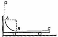 19.(14分)如图所示,水平光滑的地面上停放着一辆小车,左侧靠在竖直墙壁上,小车的四分之一圆弧轨道AB(半径为R)是光滑的,在最低点B与粗糙的水平轨道BC相切,整个轨道处于同一竖直平面内. 可视为质点的质量为m的物块从A点正上方,距水平轨道BC的竖直高度为4R处开始无初速下落,恰好落入小车圆弧轨道滑动,然后沿水平轨道滑至轨道末端C处而没有滑出. 已知小车的质量为3m,物块与水平轨道BC间的动摩擦因数μ=0.3,不考虑空气阻力和物块落入圆弧轨道时的能量损失,求BC的最小长度.