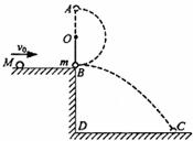 20.(14分)如图所示,O为一水平轴,轴上系一长l=0.6m的细绳,细绳的下端系一质量m=1.0kg的小球(可视为质点),原来处于静止状态,球与平台的B点接触但对平台无压力,平台高h=0.80m. 一质量M=2.0kg的小球沿平台自左向右运动到B处与小球m发生正碰,碰后小球m在绳的约约束下做圆周运动,经最高点A时,绳上的拉力恰好等于摆球的重力,而M落在水平地面上的C点,其水平位移s=1.2m. 求质量为M的小球与m碰撞前的速度(取g=10m/s2).