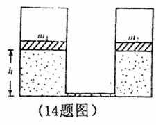 14.(10分)如图所示,两个可导热的气缸竖直放置,它们的底部由一细管连通(忽略细管的容积),两气缸各有一活塞,质量分别为m1和m2,活塞与气缸壁无摩擦,活塞的下方为理想气体,上方为真空,当气体处于平衡状态时,两活塞位于同一高度h。(已知m1=3m,m2=2m)
