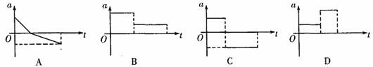 17.一物体由粗糙斜面底端冲上斜面后又返回到斜面底端。则能正确反映该物体加速度a随时间t变化规律的图象是 ( )