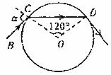 37.(8分)(选修3-4)如图所示,真空中有一个半径为R=0.1m,质量分布均匀的玻璃球,频率为f=5.0×1014Hz的细激光束在真空中沿直线BC传播,于玻璃球表面的C点经折射进入小球,并在玻璃球表面的D点又经折射进入真空中。已知∠COD=120°,玻璃球对该激光束的折射率为