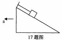 17.如图所示,质量为m的物体用平行斜面的细线连接置于倾角为θ的光滑斜面上,若斜面向左做加速运动,当物体刚脱离斜面时,它的加速度的大小为 ( )