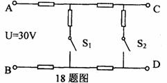 18.如图所示的电路中,每个电阻的阻值都为R,A、B两端间的电压为30V,那么( )