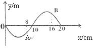 18. 一列简谐横波沿x轴方向传播,频率为5Hz,某时刻的波形如图所示,介质中质元A的平衡位置在距原点O为8cm处,质元B的平衡位置在距原点16cm处,从该图象对应时刻算起,质元A的速度与图示时刻质元B的速度相同所需的最短时间为