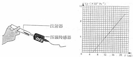 (1)根据表中数据,在下图中画出了该实验的l/p-V关系图线。根据图线,可求得种子的总体积约为 ml(即cm3)。