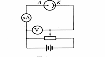 25.(10分) 如下图是研究光电效应的实验电路.现用等离子态的氢气(电离态)跃迁时所发出的光照射光电管的阴极K,测得微安表的示数是40 μA,电压表的示数是20V.已知光电管阴极材料的逸出功是3.6eV.求: