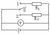 9. 如图所示,R1=10Ω,R2=8Ω,电池有内阻。当S接1时,电压表示数为2V,当S接2时,电压表示数不可能为 ( )
