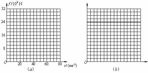 (1)请根据表中数据在(a)图中作出正面投影面积为3.0 m2的汽车的f-v图线;为了求出此汽车的f与v间的具体关系,请你选取合适的坐标轴,在(b)图中作出线性图线.