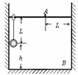 向右运动,在A处环被挡住而立即停止,A离墙的水平距离也为L.求在以后的运动过程中,球第一次碰撞点离墙角B点的距离是多少?