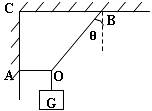 15.如图所示,用轻绳AO和OB将重为G的重物悬挂在水平天花板和竖直墙壁之间处于静止状态,AO绳水平,OB绳与竖直方向的夹角为θ。则AO绳的拉力T1、OB绳的拉力