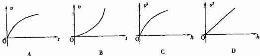 19.如图所示,小球从一个固定的光滑斜槽轨道顶端无初速开始下滑,用v、t和h分别表示小球沿轨道下滑的速率、时间和竖直高度。下面的v-t图象和v2-h图象中可能正确的是 ( )
