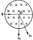20.下图为圆柱形区域的横截面,在该区域加沿圆柱轴线方向的匀强磁场。带电粒子(不计重力)第一次以速度v1沿截面直径入射,粒子飞磁场区域时,速度方向偏转60°角;该带电粒子第二次以速度v2从同一点沿同一方向入射,粒子飞出磁场区域时,速度方向偏转90°角。则带电粒子第一次和第二次在磁场中运动的 ( )