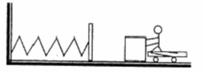 24.(18分)如图所示,光滑水平地面上停放着一个木箱和小车,木箱质量为m,小车和人的总质量为M,M∶m=4∶1,人以速率v(相对地面,下同)沿着水平方向将木箱推出,左侧墙壁连着一轻弹簧,弹簧的右端连一轻挡板(挡板质量不计),木箱撞在挡板上压缩弹簧,又被弹簧原速反弹回来,人接住木箱再以同样大小的速率v第二次推出木箱,木箱又被反弹……,问: