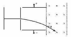 (2)若使粒子射出偏转电场时,以与水平方向成θ=30°角的方向进入一个匀强磁场区域,则偏转 电压为多大?