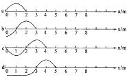 20.有一条弹性绳水平放置,振源在原点,t=0时开始振动,起振方向竖直向上,形成一列简谐波向右传播,周期为0.4s,传播速度为10m/s,t=0.3s时振源停止振动,对应各时刻波形如图所示,下列说法正确的是:( )