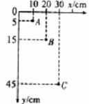 (3)某同学通过实验描迹得到平抛运动轨迹上A、B、C三个点(如图所示),其坐标标记如图,坐标原点为抛出点,y轴竖直向下,其中 点的位置或坐标的测量有明显的错误,由你认为正确的数据算出小球平抛的初速度为 m/s (结果保留三位有效数字,g取10 m/s2 )