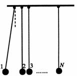18.(16分)某兴趣小组设计了一种实验装置,用来研究碰撞问题,其模型如图所示,用完全相同的轻绳将N个大小相同、质量不等的小球并列悬挂于一水平杆上,球间有微小间隔,从左到右,球的编号依次为1、2、3……N,球的质量依次递减,每球质量与其相邻左球质量之比为k (k<1). 将1号球向左拉起,然后由静止释放,使其与2号球碰撞,2号球再与3号球碰撞……所有碰撞皆为无机械能损失的正碰. 不计空气阻力,忽略绳的伸长,g取10m/s2.