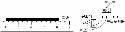 11.(4分)光电计时器是一种常用计时仪器,其结构如图所示,a、b分别是光电门的激光发射和接收装置,当有滑块从a、b间通过时,光电计时器就可以显示物体的挡光时间.现有某滑块通过光电门,计时器显示的挡光时间是5×10