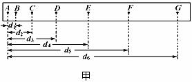 12.(8分)在做“研究匀变速直线运动”的实验时,某同学得到一条用电火花计时器打下的纸带如图甲所示,并在其上取了A、B、C、D、E、F、G 7个计数点,每相邻两个计数点间还有4个点图中没有画出,电火花计时器接220V、 50Hz交流电源。他经过测量并计算得到电火花计时器在打B、C、D、E、F各点时物体的瞬时速度如下表: