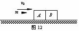 14.(10分)一颗子弹,质量为m,以初速度v0向右先后击穿放在光滑水平面上靠在一起的A、B两完全相同物体,如图12所示,A、B质量均为M,子弹在A、B中所受阻力恒为f,在A内穿行时间为t1,在B内穿行时间为t2,求子弹在A内穿行期间A、B间相互作用力的大小及B的最终速度。