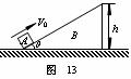 15.(10分)如图13所示,倾角θ=30°,高为h的三角形木块B,静止放在一水平面上,另一滑块A,以初速度v0从B的底端开始沿斜面上滑,若B的质量为A的质量的2倍,当忽略一切摩擦的影响时,要使A能够滑过木块B的顶端,求v0应满足的条件?