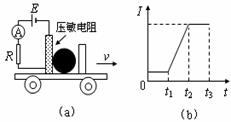 状态的装置,其工作原理如图(a)所示,将压敏电阻和一块挡板固定在绝缘小车上,中间