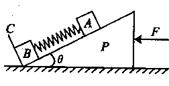 的光滑物块P斜面上有两个用轻质弹簧相连的物块A、B;C为一垂直固定在斜面上的挡板.P、C总质量为M,A、B质量均为m,弹簧的劲度系数为k,系统静止于光滑水平面.现开始用一水平力F从零开始增大作用于P. (物块A一直没离开斜面,重力加速度为g)